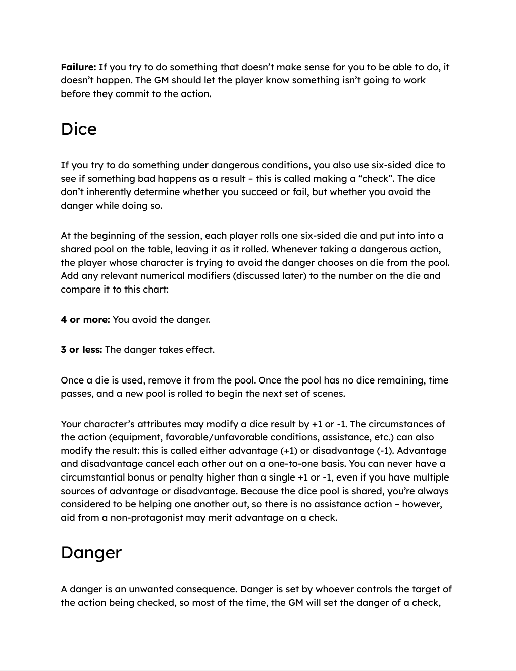 Created for the Minimalist TTRPG Jam 4, and therefore presented with no art and the simplest possible layout.